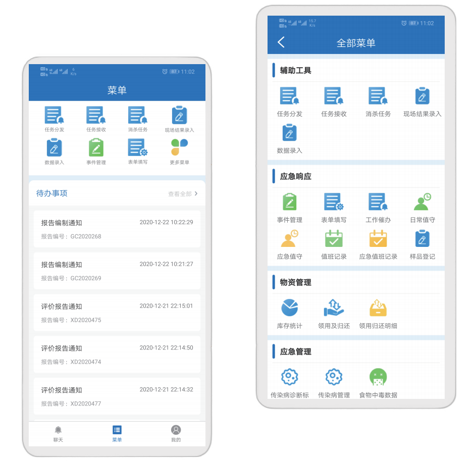 应急作业管理手持终端是基于应急作业管理系统,涵盖了GIS展示、事件总览、待办事务、事件管理、应急值守等功能,能够为卫生应急事件作业工作提供技术支持。